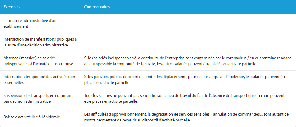 Le dispositif d’activité partielle peut être sollicité par les entreprises dans le cadre de circonstances à caractère exceptionnel (